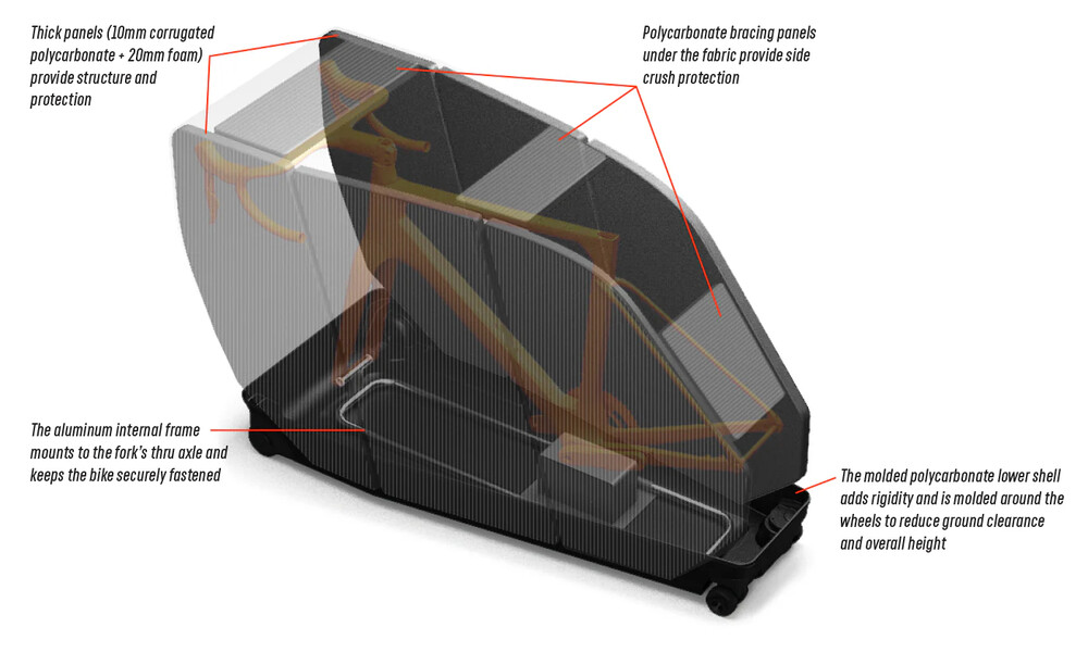 - Hardshell Protection Without The Bulk: The Loomer delivers hardshell-level protection through a design that’s strong, lightweight, and collapsible. Thick, removable corrugated polycarbonate panels form a protective wall around the bike, while panels along the top perimeter provide crush protection against side impacts. This structure is designed to withstand the abuse of airline travel — drops, stacking, and side compression.