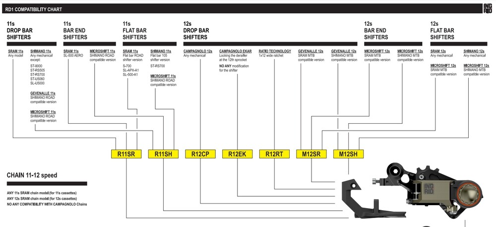 You can drive it with 11s or 12s shifters for drop bar and flat bar, Campagnolo, Sram, Shimano and more.