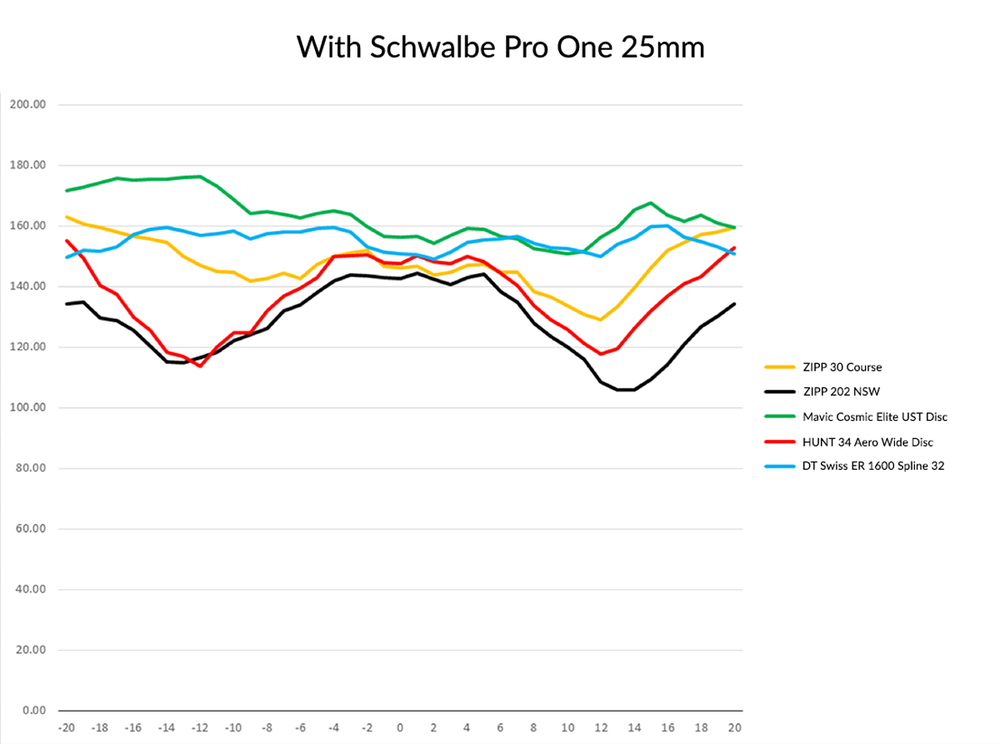 WIDER TIRES & WIDER WHEELS | RIDE FASTER Leading rim-brake wheels have been at the 27-28mm wide mark for some time, with undisputed aero benefits over narrower designs. However, they are aerodynamically limited by rim brake calipers limiting the maximum width of the brake track. Further, most are optimised for narrower tires. 23mm tires used to be the standard… but for us, you and most pro riders, 25/28 and even 30mm tires are the preferred choice. Let’s face it: when leaning in on the final turn of a mass bunch sprint or descending sweeping alpine bends, you want serious grip! Plus, the lower rolling resistance benefits of 25 and 28mm tires* mean that road disc aero wheels should be specifically designed around these wider tires. Accordingly, this wheelset has been designed using schematics and feedback from Schwalbe's own engineers. (*Especially rider-system benefits, wheel & tire only tests do not include rider damped losses, and how lower pressures reduce these losses by reducing rider movement. This is a whole other area we will be releasing scientific data on.)