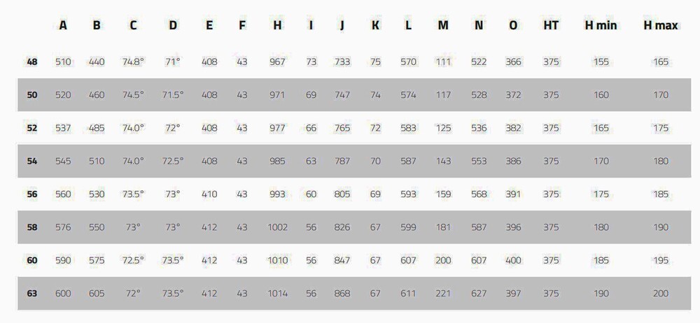 - 많은 시간동안 유지되는 레이스 지향과 핏(racing-forward approach and fit)을 위해 필요한 모든 것을 가진 능력있는 모델로 올라운드 바이크의 균형잡힌 지오메트리(balanced geometry) 덕분에 어떠한 도로에서도 노련하고 흠잡을 데가 없다. 포크의 낮은 크라운 액슬 거리, 표준 헤드튜브 길이, 낮은 시트스테이 디자인 등이 레이스 지향의 특징을 보여주는 요소이다.