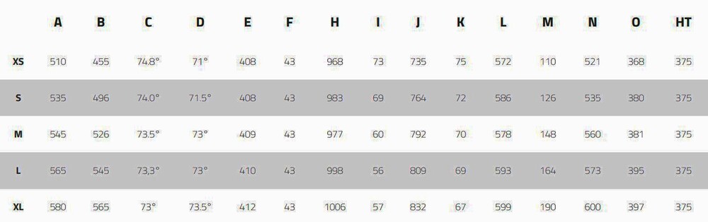 - M Head tube lenght (mm)