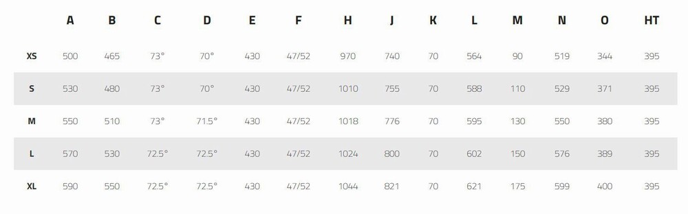 - M Head tube lenght (mm)