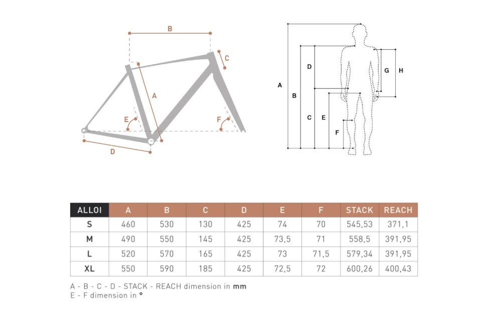 NEW GEOMETRIES: 30MM MAKE THE DIFFERENCE: It’s the attention to detail that makes the difference. The rear triangle of the ALL-IN frame has been completely redesigned compared to the previous aluminium gravel model A-GR01. The seat stays connect to the seat tube 30 millimetres lower than the top tube: this solution results in greater rear end stiffness, which translates into a more confident and reactive ride. The asymmetrical design, with the left stay featuring a distinctive 160° “elbow”, provides superior resistance when braking.
