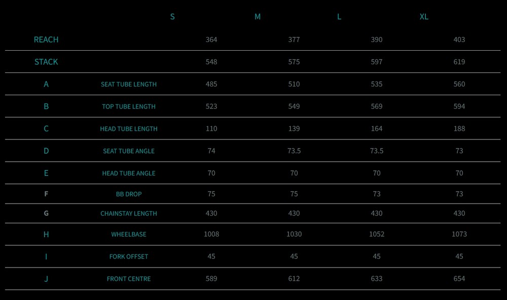 재미있으면서 확실히 중심을 잡은 지오메트리: 자전거의 영혼은 지오메트리에 있다. 아시아의 험로들을 수년간 라이딩하면서 얻은 경험을 바탕으로 우리는 전천후 어드벤처 바이크가 보여야하는 감각을 실현할 수 있는 지오메트리를 세밀하게 잡아왔다. 430mm 체인스테이 길이는 확실하게 리어 엔드가 광폭 타이어에 맞으면서도 여전히 생동감이 있게 해준다. 상대적으로 경사도가 높은 시트튜브 각도는 라이더의 몸무게가 두바퀴사이에서 정확하게 중심에 위치하도록 해준다. 낮아진 BB 높이는 당신이 자전거 위에 앉아있다기 보다는 자전거 속에 앉아있다는 감각을 제공한다. 더 누은 각도의 헤드 튜브 각도는 A21가 가장 험한 도로에서도 부드럽게 넘어갈 수 있도록 해준다.