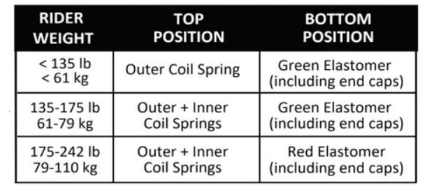 - 라이더 최대 체중 허용치: 110kg (242 lb)